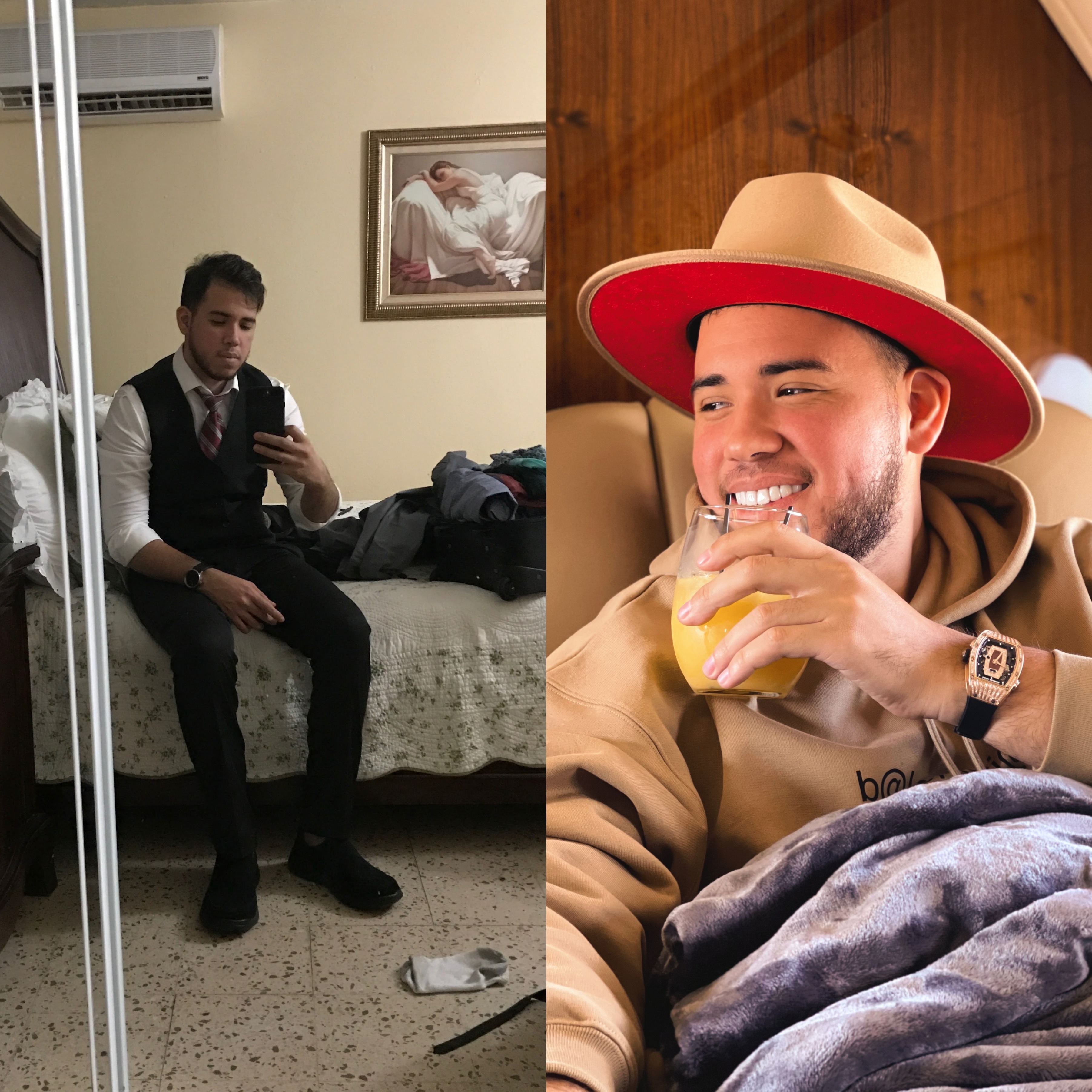 En un lado tenía 3 trabajos como mesero, musico y tutor generando $100 al día en propinas y en el otro lado ando esperando la comida del chef en un Gulfstream quemando $3,000 por hora en gasolina.